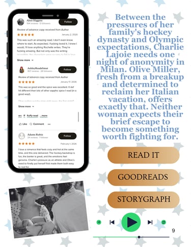 If selected, your book will receive a custom 2-page spread featuring your cover, an elevator pitch, highlighted five-star reviews, direct purchase link, and links to add it on Goodreads & Storygraph.